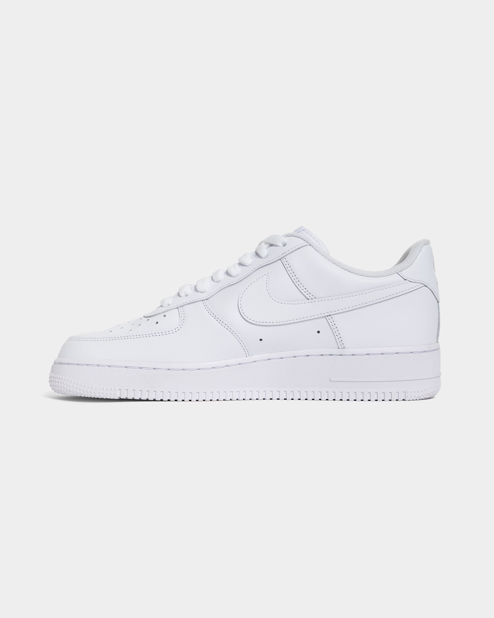 Nike Air Force 1 "All White" Is an iconic trainer with a classic silhouette. Clean, all-white leather, with that Nike cushioning. This shoe is a go-to for any outfit, offering a timeless look that never goes out of style.